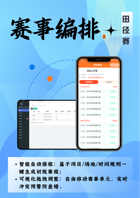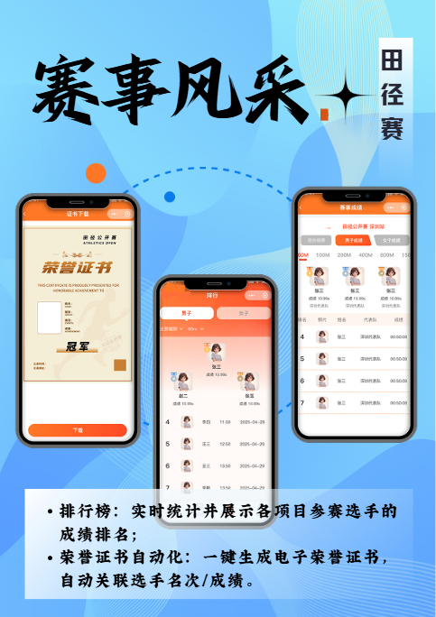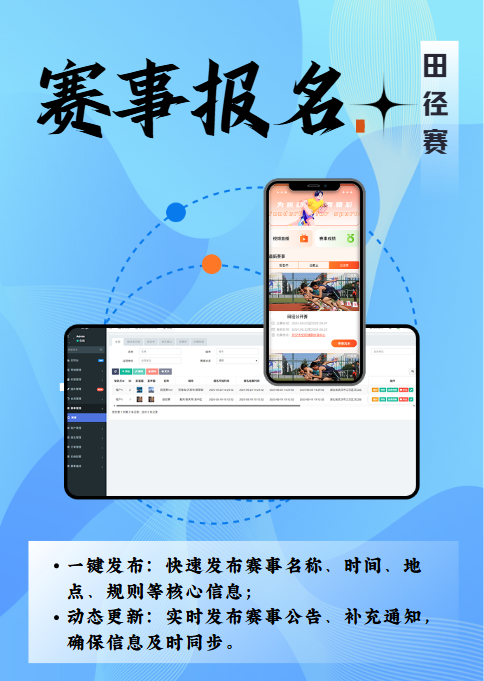 功能实在、操作简单,让田径赛报名管理少操心,专注比赛本身。